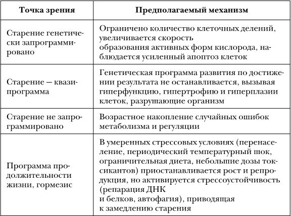 Приведу таблицу, где я кратко обобщил точки зрения на «Запрограммированность старения» (табл. 4).