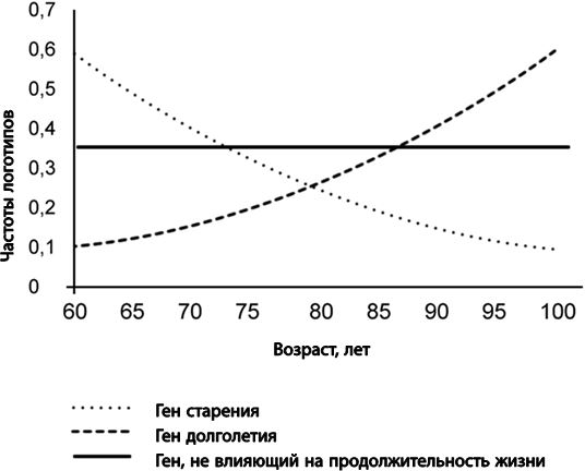 Как установить, что определенный вариант (так называемая аллель) того или иного гена предрасполагает к долголетию? С этой целью проводят широкомасштабные исследования последовательностей геномов людей из разных возрастных групп. Согласно гипотезе демографической селекции, в той части популяции, которая характеризуется долгожительством, могут быть утрачены аллели, определяющие преждевременную смертность от заболеваний, связанных с возрастом и, напротив, накоплены генетические варианты, связанные с замедлением старения и повышенной стрессоустойчивостью (рис. 12).