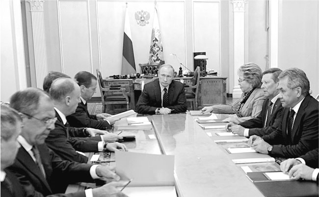Президент Российской Федерации Владимир Путин на оперативном совещании Совета безопасности России. 7 сентября 2015 года