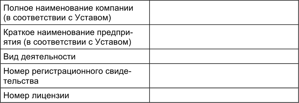 Такую информацию проще всего предоставить в виде так называемого паспорта компании, пример которого приведен ниже.
