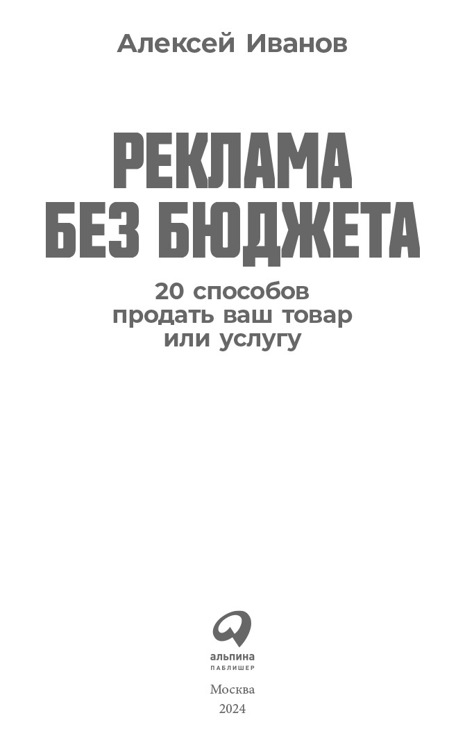 Александр Алексеев,президент Клуба арт-директоров России (ADCR)Алексей Иванов – русский Огилви. Легкие и практичные тексты, наглядные картинки, ясные выводы и меткие афоризмы заставят вас реально улучшить рекламу вашего бизнеса. Еще пять лет назад я узнал, что подписи к электронным письмам могут служить рекламой, но стал использовать это только после книги Алексея Иванова. Уверен, что даже знаток рекламы найдет в книге много интересных работающих инструментов.