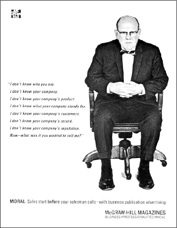 Затем приводится мораль: продажи начинаются задолго до вашей встречи с потенциальным клиентом – с рекламы в деловых изданиях.