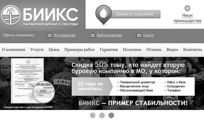 Сделаем 50 %-ную скидку каждому, кто найдет в Москве или Московской области вторую буровую компанию, у которой более 20 лет не менялись адрес, телефон, генеральный директор, юридическое лицо и обслуживающий банк.