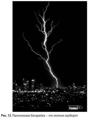 Итак, вот исходная постановка задачи. Есть визуальный образ ветвящегося во все стороны разряда молнии. И есть основное послание – наши батарейки хранят в себе огромные запасы энергии.
