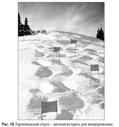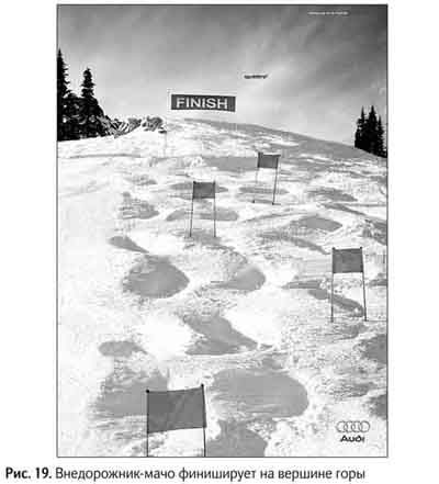 ОК. Переходим к следующей задаче. Рекламируется автомобиль-внедорожник. Его особенность – не только езда по абсолютному бездорожью, но и завидная маневренность. И то, и другое свойство можно передать, если показать горнолыжный спуск, дав понять, что это и есть привычная стихия для нашей машинки (рис. 18).