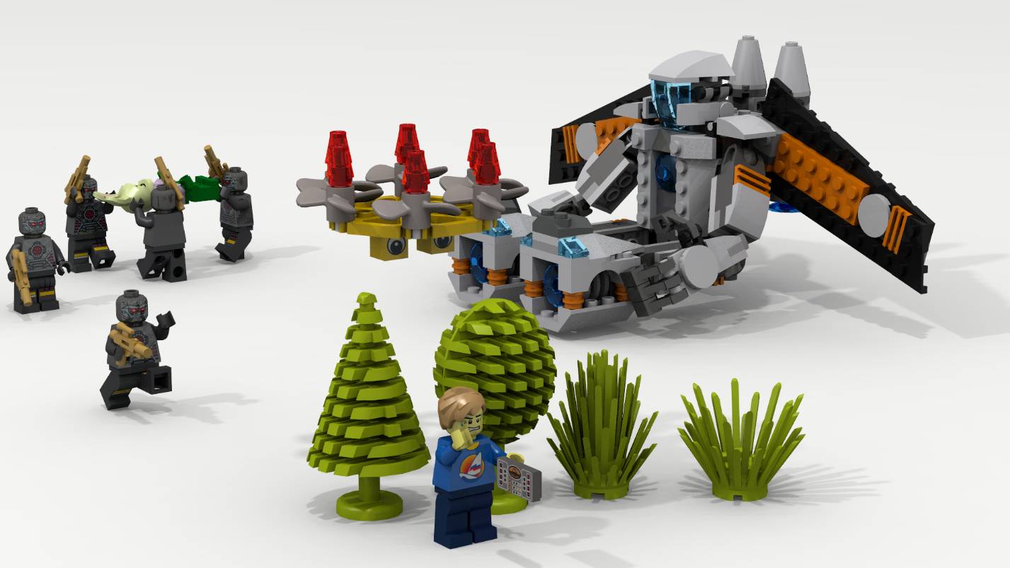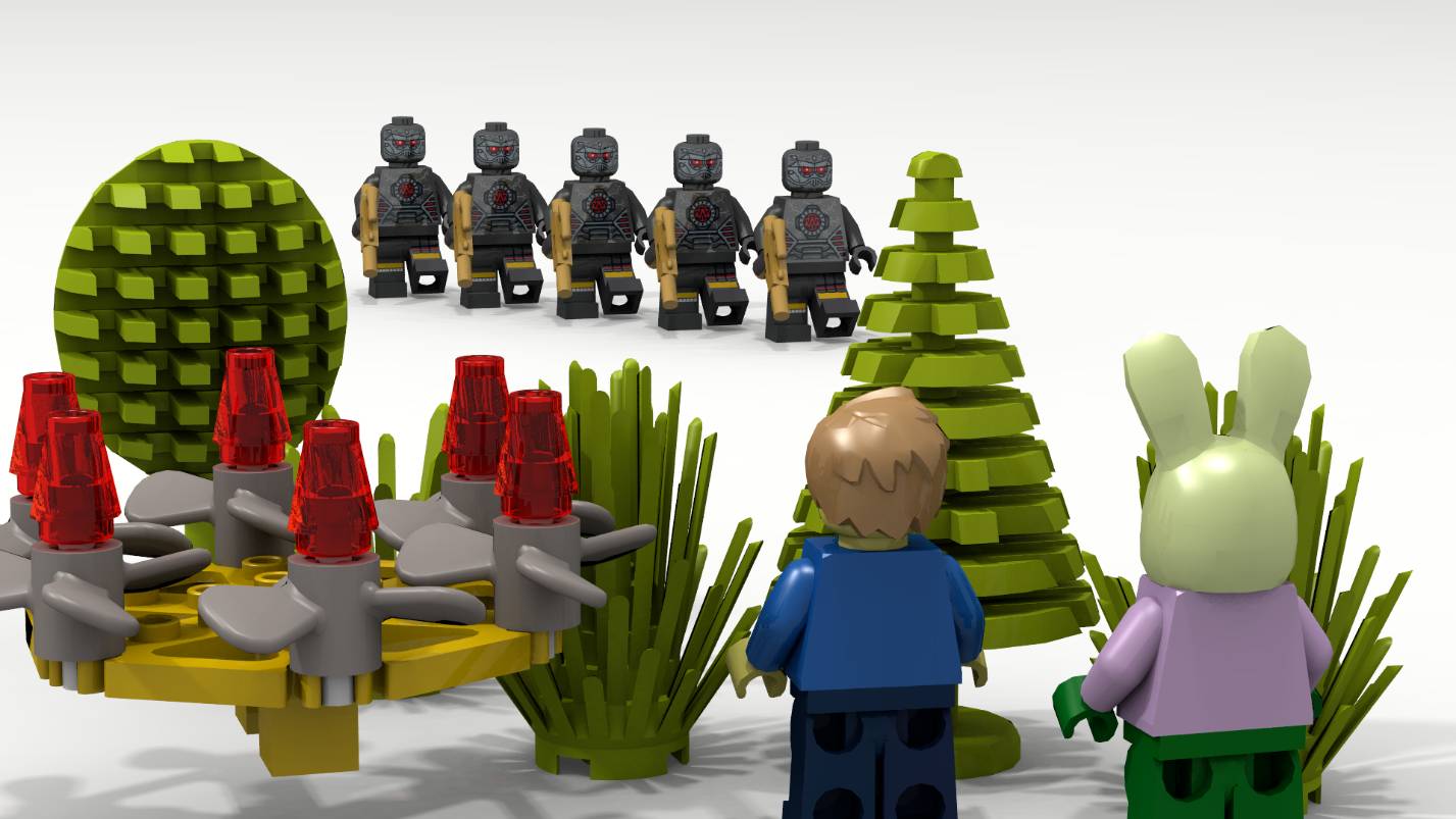Всего злоботов было пять. Каждый нёс в руке лазерный пистолет. С оружием они выглядели ещё страшнее.