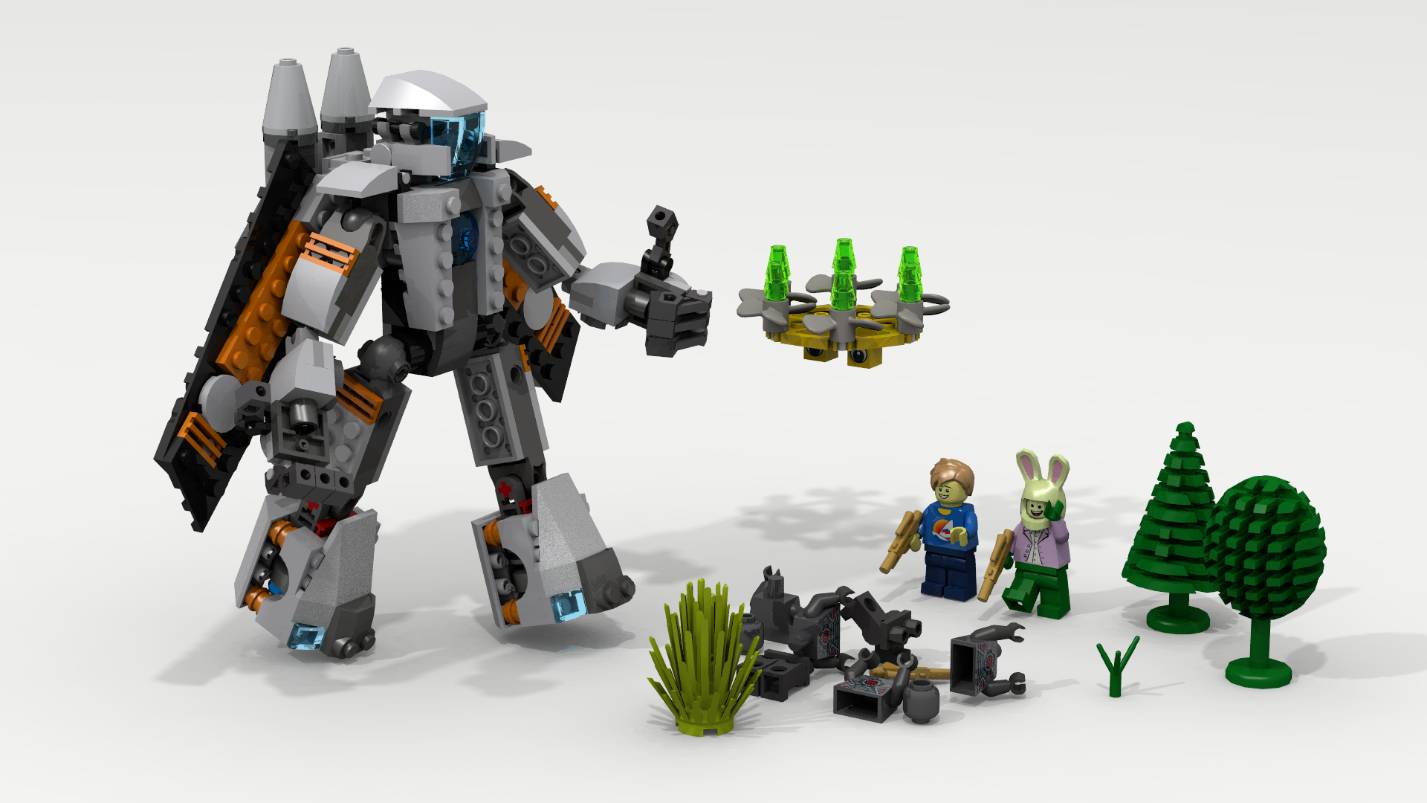 Приглядевшись, он увидел, что на передней панели на груди робота есть место как раз для маленькой серой чудо-детальки.