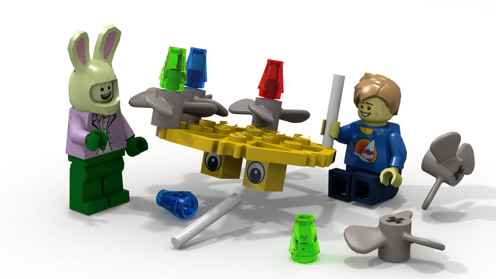 И принялся за дело. Кругом были детальки разных форм и размеров. Сева построил небольшую раму и прикрепил к ней несколько пропеллеров – так, чтобы они свободно вращались. Кварх постоянно прыгал вокруг, тычась в руки мальчика носом и восторженно повизгивал. То есть всячески мешался.