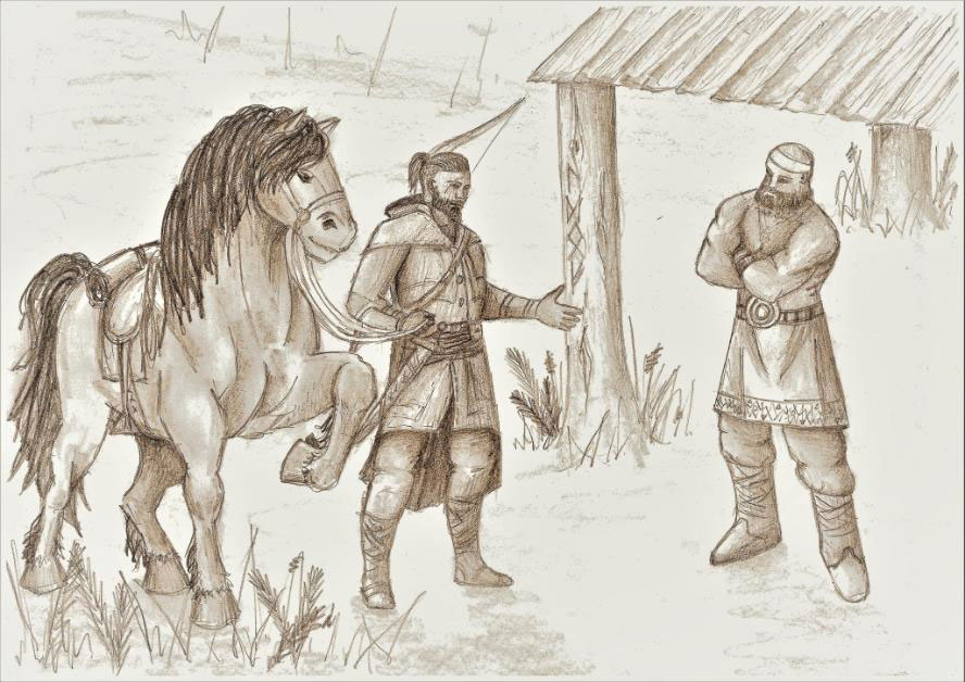 Витязь реку переходит,Коня к кузнице подводит,Руку к сердцу прижимаетИ в поклоне опускает…Сварояр:– Юный витязь, гой еси, —Так встречали на руси,– Сурья вот, хлебни немного,Далека ль твоя дорога?Витязь:– Добрый коваль, мир тебе!Дорога далека моя.Не откажи в постое мне,Да надо подковать коня.Отплачу монетой звонко.Сварояр:– Не говори об этом громко!И не тряси своей машной,Коли хочешь на постой!Тебе еще поможет где-то,Но здесь нам не нужна монета.От серебра в сердцах пожар!А как кличут?Витязь:– «Ратизар».– Соглашусь с тобой, кузнец.Верно сказывал отец:«Не бери, давай всю жизньИ всему у всех учись!»За добро плачу добром.Коль не хочешь серебром,Как поправим коню ноги,Расскажу я о дороге.И о невероятном чудеПоведу я разговор,О том, что прячут злые людиНа юге, среди Черных гор.Сварояр:– Хм, что же – раздувай огонь!Бежит время, как водица.Ну-ка топай сюда, конь,Подставляй свои копытца!