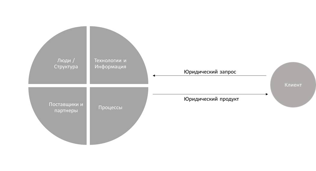 Теперь представим операционную систему юридической функции, которая бы включала в себя все основные элементы, обеспечивающие оказание юридических услуг (создание юридических продуктов):