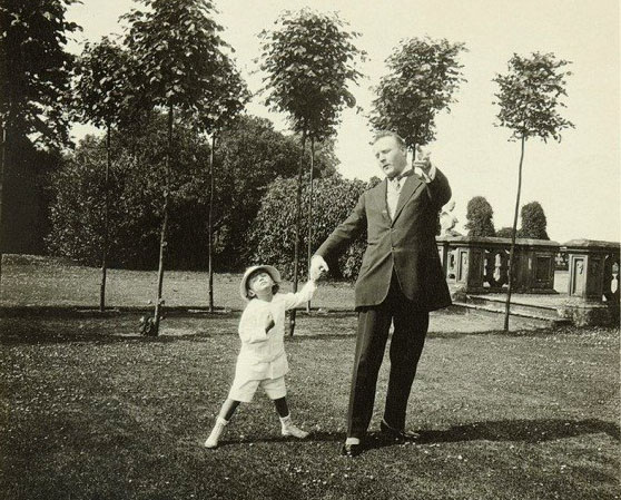 Михаил Александрович с сыном Георгием на фоне замка Небворт (Великобритания). Фото 1913 г.