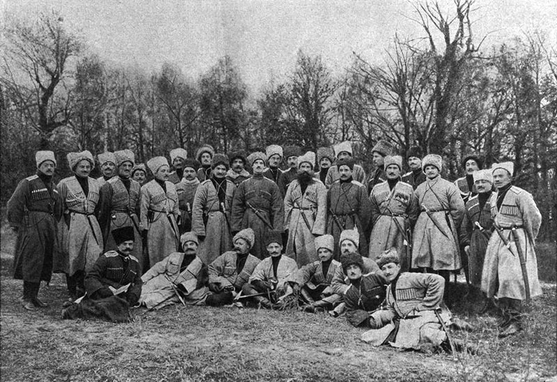 Великий Князь Михаил (в центре) среди чинов Дикой Дивизии 1914 г.