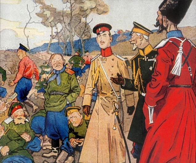 Вел. Кн. Михаил и чины «Дикой Дивизии». Агитационный плакат, Германия 1917 г.
