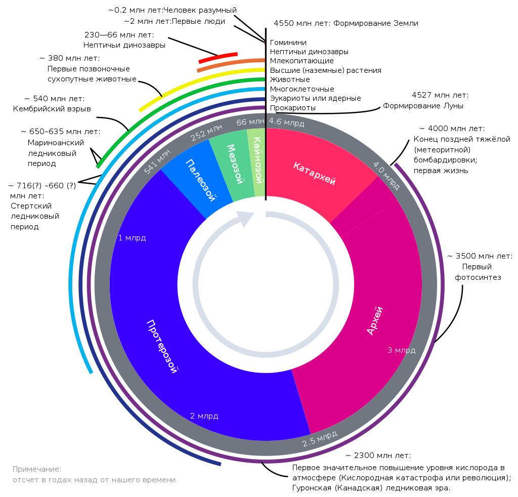 Геологическое время в виде диаграммы, изображающей относительные размеры эпох в истории Земли