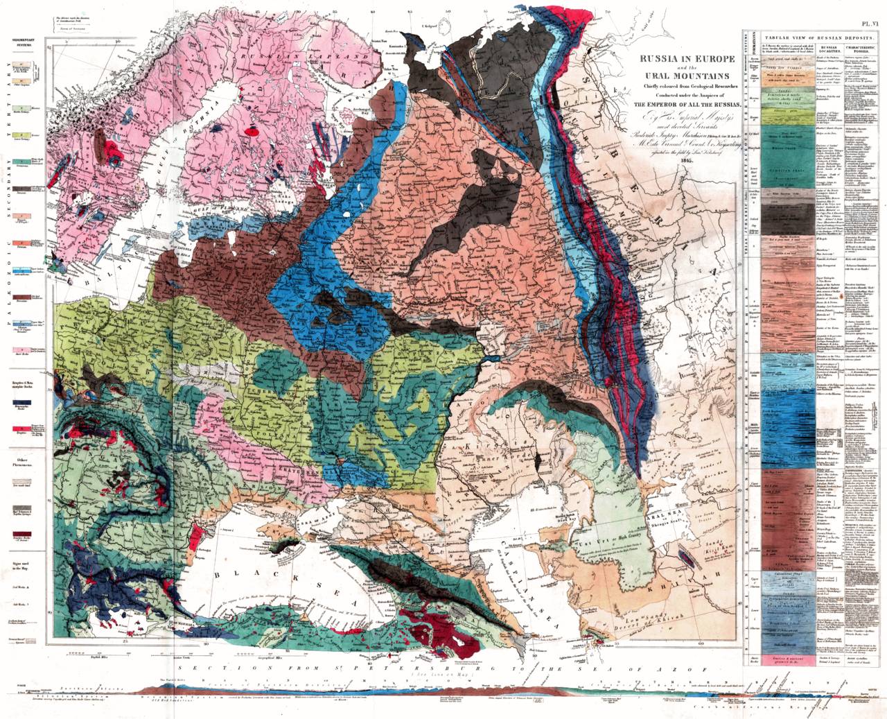 Геологическая Карта Европейской России и Урала, 1845