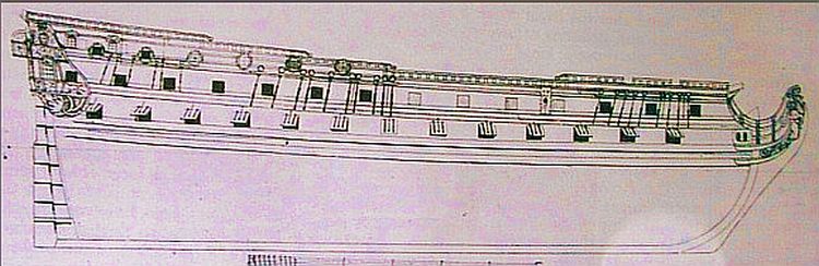Чертеж линейного корабля «Твердый». Купленного Федором Ивановичем Салтыковым в Англии после войны за Испанское наследство.