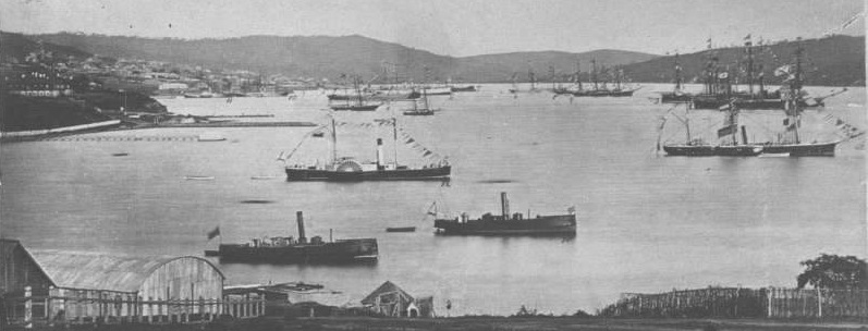 Фото 6 – 30 августа 1880 г. Корабли Тихоокеанской эскадры и Сибирской флотилии в бухте Владивостока.