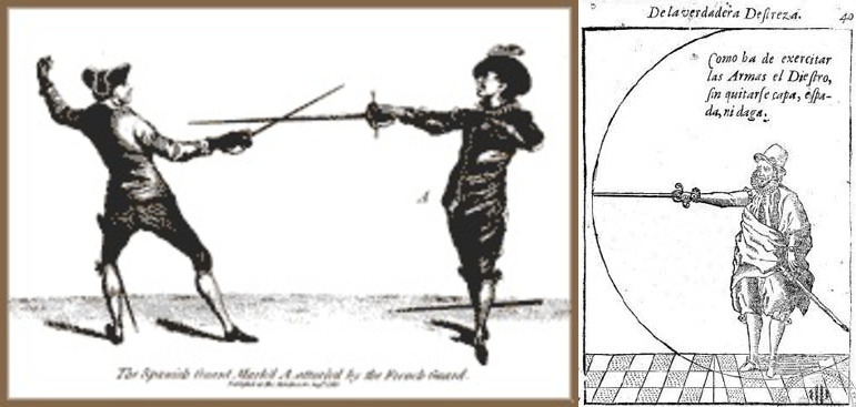 Три отряда английских абордажников приготовились сопротивляться пяти отрядам испанских солдат, одетых в кирасы. Если бы корабли сошлись в идеальных условиях, то преимущество испанцев было решающим. Сто пятьдесят вымуштрованных солдат против девяноста головорезов Хардкора. Но английская картечь и превратности судьбы распорядились по-своему и столкнуться на палубе «Ривенджа» суждено лишь сотне идальго, а это согласитесь не легкая прогулка, а тяжелая битва. Но Дон Илларион – капитан королевских солдат не унывал, что его алебардщики, что мушкетеры, что мечники были лучшими солдатами на свете, а офицеры, коих числом было около десятка были обучены магическому искусству дистрезы19, у лучшего фехтовальщика Кастилии дон Херонимо Санчес Карранза20, который собрал и обобщил все известные на тот период системы фехтования и сделал свою лучшую и всё сокрушающую.