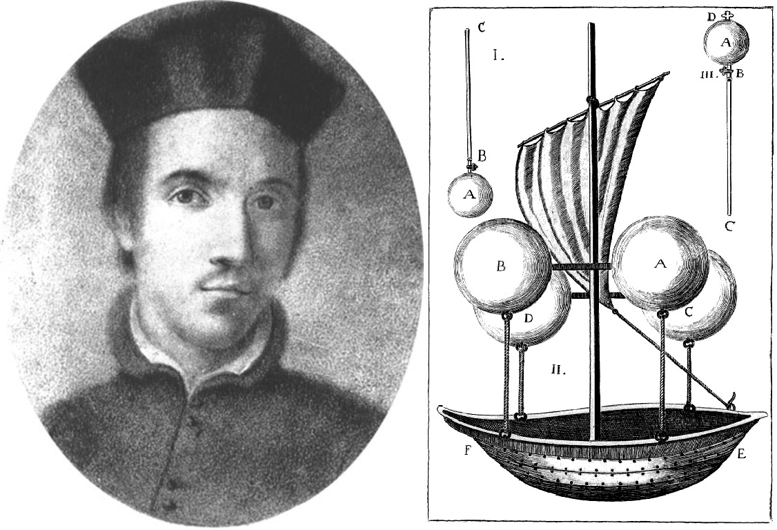 Иезуит Лана предлагал полет аппарата на четырех предварительно вакуумируемых сферах диаметром 7,5 метра, с толщиной стенки 0,1 миллиметра, или 40 метров и 1,5 миллиметра. Не будем судить о технологической возможности техники того времени, мне кажется, мы многого не знаем, но можно взять, например массу скорлупы куриного яйца весом 5-граммов и с удивлением узнать, что она выдерживает до 5-килограммов веса курицы-несушки, а следовательно, разница в 1000 раз!
