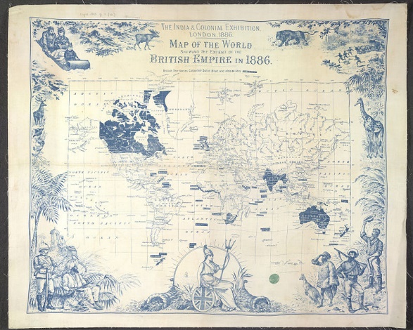 Льняная карта Британской империи, которая была продана на выставке в Глазго i886 года.