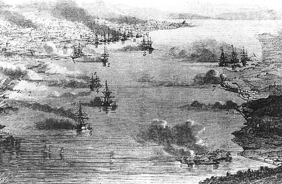 Обстрел Кагосимы британцами 15 августа 1863, в результате которого были разрушены промышленный центр Сюсэйкан и монетный двор, что говорит о целях нападавших.