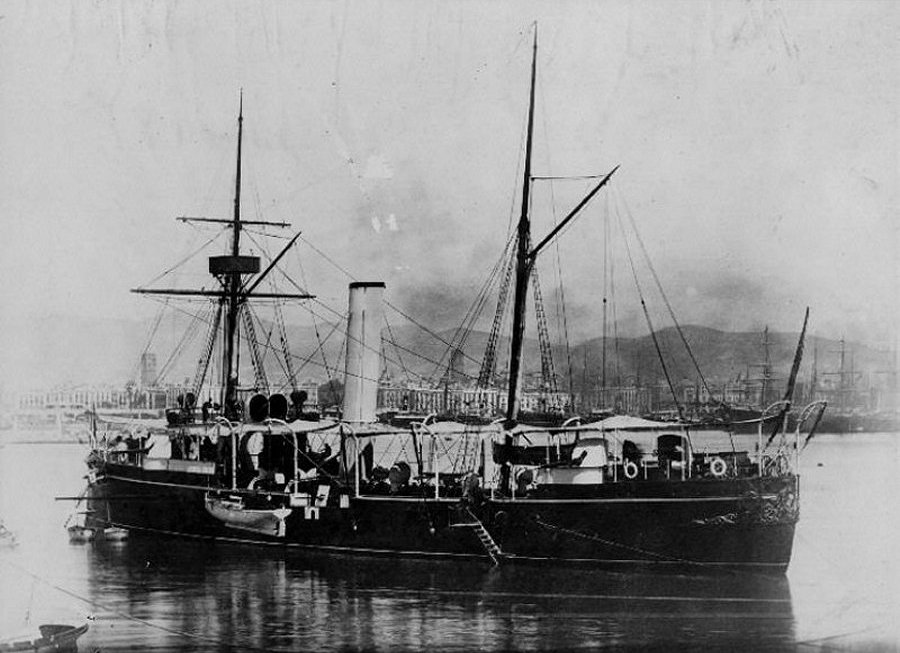 Крейсер «Принцесса Мерседес», один из трех однотипных безбронных крейсеров построенных к i886 году для Испанского флота. (Рисунок автора. СС0).