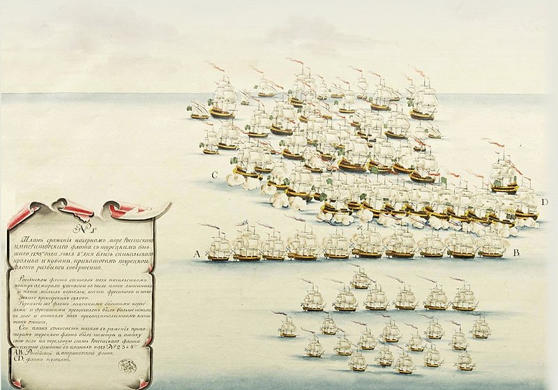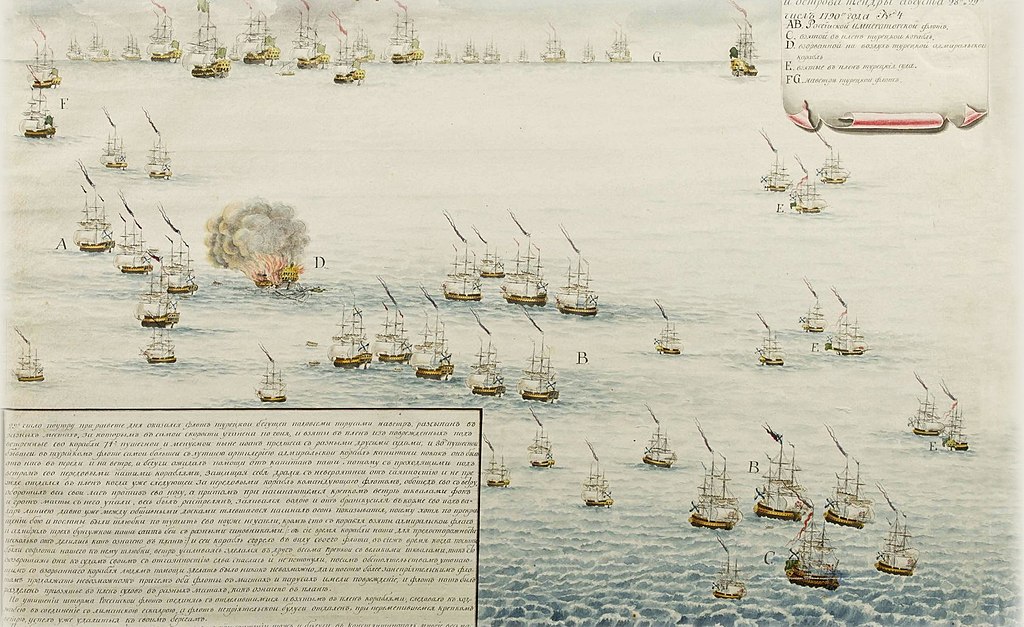 Но перед этим, 8 июля мощный османский флот, избавившись от противника на море Средиземном перешел в Черное. Здесь его повстречала эскадра Федора Федоровича Ушакова, о личностиадмирала я высказал свои предположения выше. Русская эскадра предотвратила высадку десанта в Тавриде. Ход Керченского сражения достаточно освящен в соответствующей литературе, я хочу лишь заметить, что греки были капитанами кораблей: линейного корабля «Иоанн Богослов» (46 пушек), капитан 1-го ранга Н. П. Кумани, фрегата «Святой Иероним» (40 пушек), капитан 2-го ранга А. П. Алексиано, фрегата «Кирилл Белозерский» (40 пушек), капитан 2-го ранга Е. П. Сарандинаки. А флотилия корсарских кораблей, как могла, помогала эскадре и состояла из: «Принцесса Елена» (16 пушек), «Панагия Апотоменгане» (16 пушек), «Абельташ» (14 пушек), «Феникс» (12 пушек, Г. Н. Бенардаки), «Святой Климент папа Римский» (10 пушек), «Панагия ди Дусено» (10 пушек), «Святой Николай», «Панагия Попанди», «Панагия Турляни», «Карло-Константин», «Святой Александр», «Слава Святого Георгия», «Красноселье», а также брандеры «№ 1» и «№ 3»