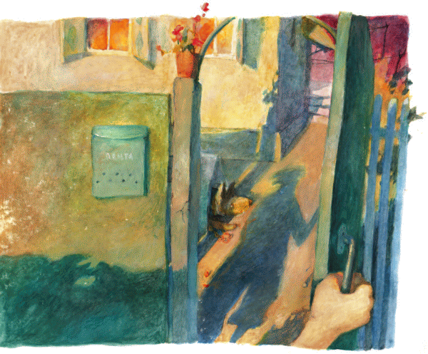 Он осторожно выглянул за забор и, никого не увидев, быстро стукнул калиткой.