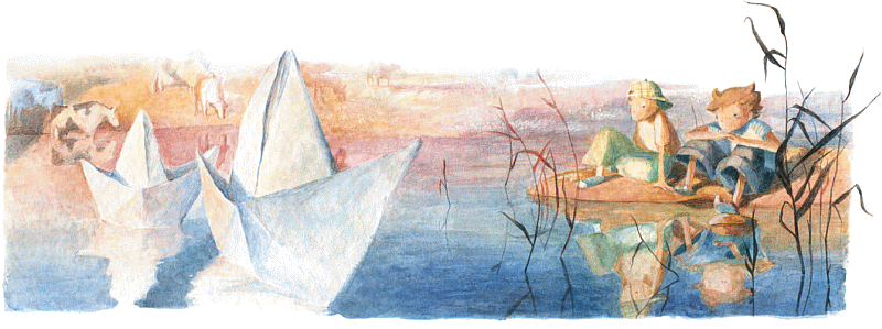 Он сочувственно замолчал. Смеркалось, над рекой стал подниматься туман, и ребята смотрели, как два бумажных кораблика отважно нагоняют детский носок с продранной пяткой. Из леса донёсся долгий крик какой-то проснувшейся ночной птицы, и Андрейка неожиданно сказал: