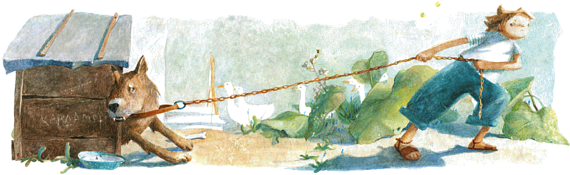 Пёс в ответ зевнул и, встряхнув ушами, полез обратно. Велька обиделся, упёрся ногами и потянул цепь на себя. В будке напряглись и сдавленно зарычали. С полминуты мальчик и пёс боролись, затем из будки показались лапы и рычащая голова. Когда азартный Велька выволок собаку наполовину, Кардамон умолк и поднял укоряющий взор. Велька устыдился и отпустил цепь.