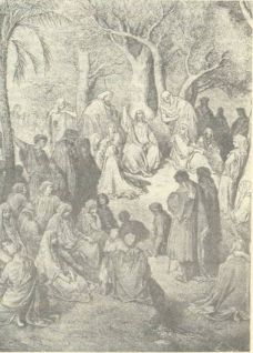 И действительно, Иисус, окруженный учениками, вскоре появился на ровной скалистой площадке, хорошо видный народу, терпеливо ждавшему его появления. Вместе с ним во время Нагорной проповеди были не только двенадцать апостолов, но и те семьдесят миссионеров, которых он обычно рассылал в разные концы земли.