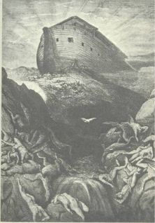 Если учесть, что, как сказано в Библии, «продолжалось на земле наводнение сорок дней» (Быт. 7: 17), а вода убывала сто пятьдесят дней и первые «верхи гор» показались на десятый месяц, а потом прошло еще сорок дней, пока Ной, наконец, решился открыть окно, то со времени отплытия минул, по-видимому, едва ли не год. Тем более, что, открыв окно, Ной еще не увидел никакой земли и для проверки выпустил ворона, который, как сказано, «вылетев, отлетал и прилетал», так как нигде не мог опуститься на сушу. Потом Ной выпустил голубя. Нои голубь «не нашел места покоя для ног своих и возвратился к нему в ковчег; ибо вода была еще на поверхности всей земли…». Далее в Библии следует очень трогательная, живая и выразительная деталь: Ной «простер руку свою, и взял его (голубя), и принял его к себе в ковчег» обратно. Прошло еще семь томительных дней. За это время силы и Ноя и всех, кто находился в ковчеге, уже почти иссякли. Впоследствии сын Сима (внук Ноя) рассказывал слуге Авраама Елиезеру, что больше всего хлопот доставляли Ною заботы о том, чтобы всех – и людей, и особенно крупных хищных животных, а также птиц и рыб – накормить вовремя, – ведь все должны были прибыть на сушу в целости и сохранности, чтобы продолжить земную жизнь во всем многообразии и живом многоцветье ее проявлений. Ковчег, словно в миниатюре, сохранял в себе буквально все, что существовало на земле до потопа. Ною выпала редкостная и священная роль хранителя всего сущего. В своем ковчеге он был прямым посланцем Бога и стремился выполнить все его предначертания с тою же точностью, с какою строил свой необыкновенный корабль. И вот, помедлив еще семь дней, он выпустил голубя через окно во второй раз.