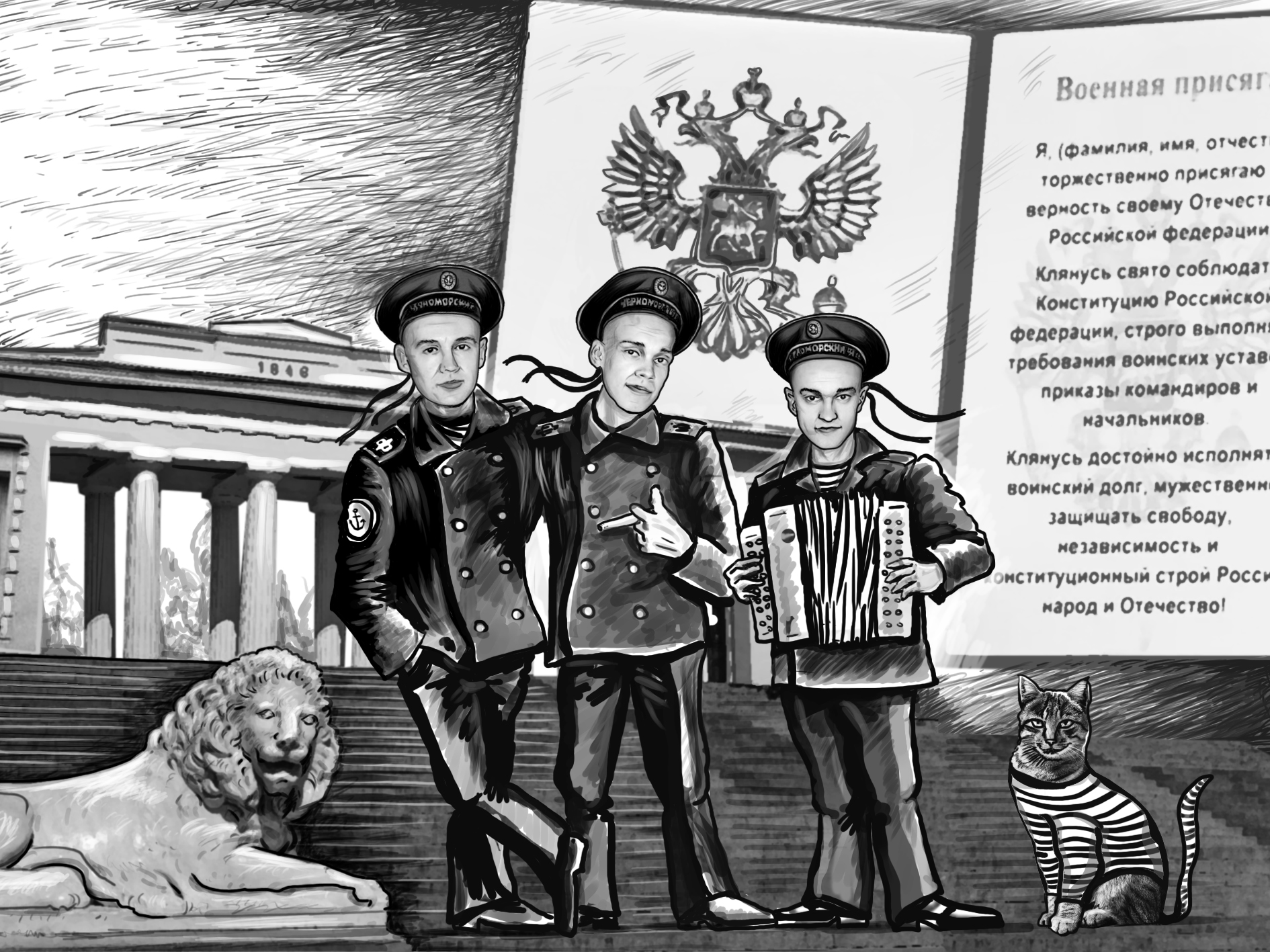 – Стой! Раз-два! – крикнул офицер. – Первую неделю вы будете на карантине, чтобы не заразить остальных! Затем вы пройдете курс молодого бойца, после чего примете присягу и свалите по частям! Всем все ясно? А теперь бегом за мной, будете получать форму матросов! – громко, чтобы всем было слышно, проорал он.