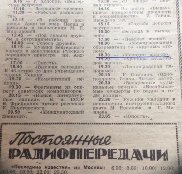 Я сохранил газету с программами телепередач, где было напечатано МЕЛОДИИ ВРАГОВ.