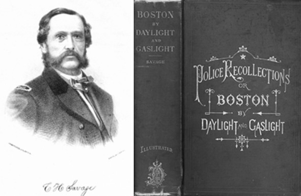 Слева: Эдвард Сэвэдж, справа: раритетное издание с 2-я книгами Сэвэджа – «Воспоминания бостонского полицейского» и «Бостон при дневном свете и газовом освещении».