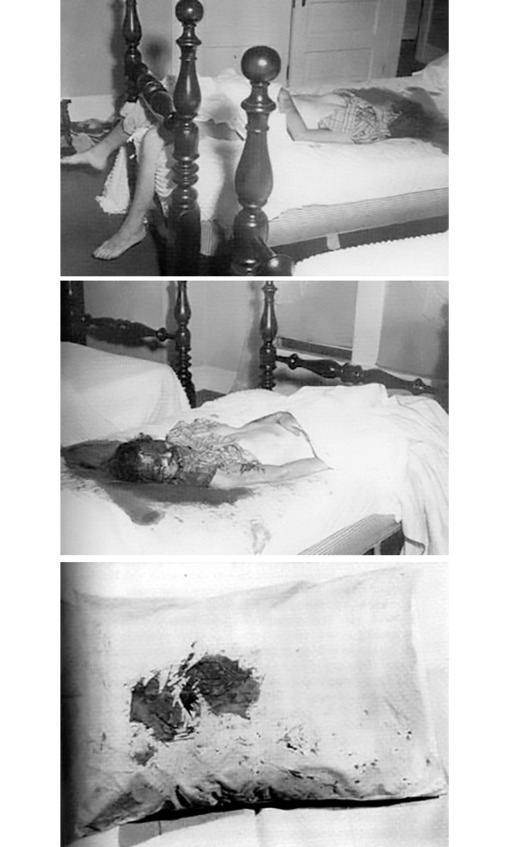 Эти фотографии демонстрируют положение тела Мэрилин Шэппард в кровати и подушку в изголовье. По мнению коронера Гербера, странный кровавый след на подушке был оставлен орудием убийства (неким «медицинским инструментом»), которое преступник положил туда, а затем унёс с собою.
