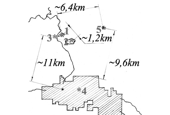 Этот план местности даёт общее представление о взаимном расположении важных для нашего повествования объектов. Условные обозначения: *1 – курортный район «Кедди резёт» (Keddie resort); *2 – населённый пункт Кедди; *3 – резиденция Гэри Моллэта, управляющего «Кедди резёт», расположенная рядом с автозаправочной станцией и старым мотелем. Все эти объекты были отделены от «Кедди резёт» автотрассой №89 и неглубоким, но бурным ручьём Спаниш-крик; *4 – город Квинси в границах 1980 г.; *5 – «Маунт Хуг» (Hough), живописная поросшая вековым лесом гора, где старшеклассники местной школы частенько устраивали пикники. Для упрощения рисунка на нём не изображены водоёмы, линия железной дороги, а также многочисленные грунтовые дороги. План выполнен без соблюдения масштаба.