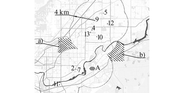 Эта местности к востоку от г. Сакраменто приводилась в книге I «Истории Гиены» для иллюстрации тезиса о применимости методов и допущений «географического профилирования» к анализу локализации мест нападений насильника из восточного Сакраменто. Там же, в книге I, были сделаны необходимые пояснения. Напомним вкратце, что в выделенных штрих-пунктиром участках a) и b) в 1976—1978 гг мог проживать Гиена. Район Натома медоуз, в котором Мэри Салинас зимой 1979 г купила дуплекс, находился как раз в области b).