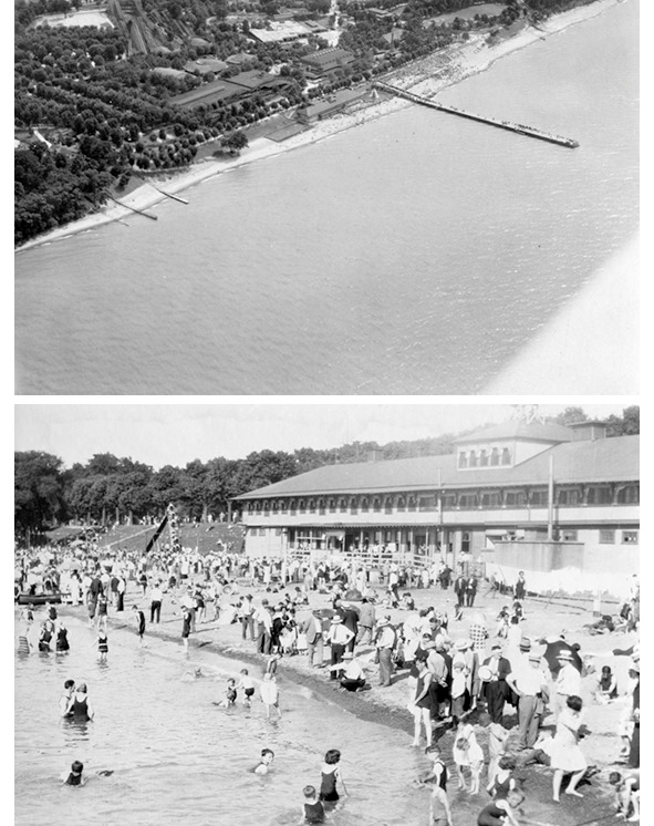 Пляж Евклид считался парковой зоной и был облагорожен уже в начале XX столетия. Он представлял собой полоску песка протяжённостью около 500 метров, с трёх сторон её обступал густой зелёный массив. На пляже была возведена длинная прогулочная галерея с кабинками для переодевания и душем на первом этаже. На фотографии вверху, сделанной с борта самолёта в 1936 году, можно видеть панораму пляжа. Нижняя фотография относится к 1929 году.