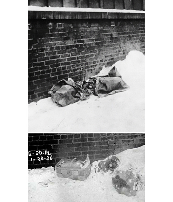 Место обнаружения фрагментов женского тела во дворе дома на пересечении Сентрал-авеню и 21-й стрит 26 января 1936 года.