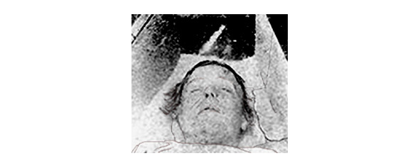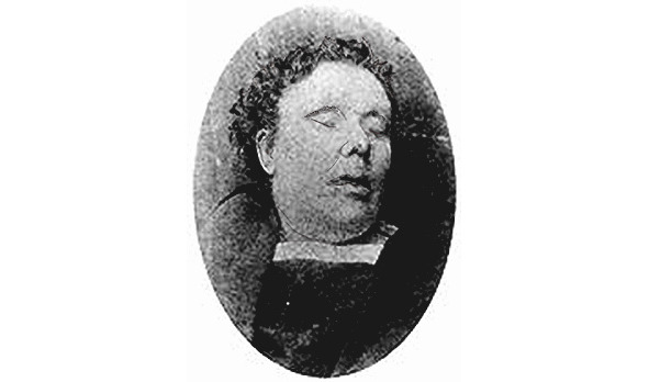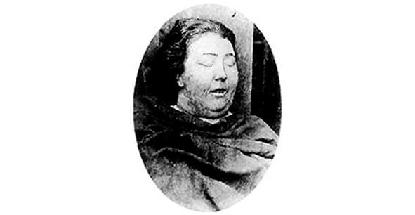 Марта Тэбрем. Фотография сделана в морге; хорошо различим разрез горла от уха, грубо зашитый анатомом.