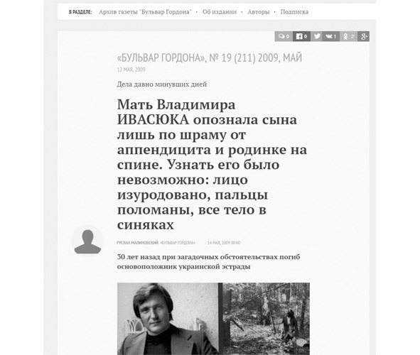 Одна из многочисленных современных заметок, посвященная обстоятельствам гибели Владимира Ивасюка.