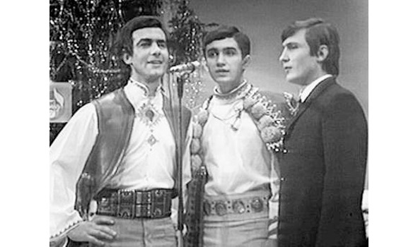 Кадр из ТВ-записи исполнения песни «Червона рута» на фестивале «Песня-71». Владимир Ивасюк в костюме справа.