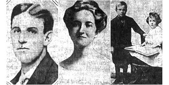 Газетные публикации той поры позволяют составить представление об облике членов семьи Хилл. Слева направо: Уилльям Хилл, Рут Ринтол-Хилл, её дети Филип и Дороти.