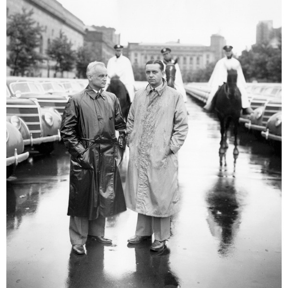 Эта фотография сделана в августе 1938 года. На ней можно видеть мэра Кливленда Гарольда Бартона (слева) и его помощника по вопросам общественной безопасности Элиота Несса. Они сфотографировались после тожественной церемонии передачи патрульной службе полиции большой партии радиофицированных автомашин.