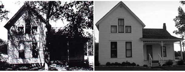 Дом по адресу: г. Виллиска, 2-ая стрит, 508. Слева фотография из газеты 1912 г., справа – современный вид. Здесь в ночь на 10 июня 1912 г. было совершено одно из самых мрачных преступлений в криминальной истории США. На фотографиях вид со стороны южного фасада. Здание было построено в 1868 г. и после драматических событий июня 1912 г. сменило на протяжении 20-го столетия в общей сложности девять собственников. За эти годы дом подвергался разнообразным перестройкам и перепланировке, в частности, в кухне на первом этаже была прорезана дополнительная дверь и лестница с северной стороны оказалась перенесена на восточную. Дом был электрифицирован, к нему был подведён водопровод и на первом этаже устроена ванная комната. Всего же за всё время своего существования дом поменял 13 собственников и 8 лет находился под управлением городской компании, т.е. фактически оставался бесхозным. Последние хозяева дома – Дарвин и Марта Линн, купившие его в 1994 г.– предприняли меры по полной реконструкции здания и восстановлению его вида, соответствующего 1910 г. Ныне эти работы окончены и здание используется как частный музей, который можно посетить не только с целью экскурсии, но даже переночевать для проведения парапсихологических экспериментов. Это место пользуется немалой популярностью у разного рода «охотников за привидениями» и экстрасенсов, которые ночуют здесь для установления «паранормальных контактов».