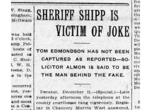 Статья в газете от 12 декабря 1908 г. с рассказом о том, как шериф Шипп сделался жертвой весёлого розыгрыша.