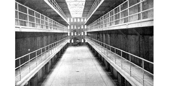 Интерьер тюрьмы «Брайдвелл». Во второй половине 1940-х гг. это было весьма мрачное учреждение, переполненное узниками сверх всякой меры. Помимо лиц, находившихся под следствием, в тюрьме содержались также уголовники, получившие срока до 5 лет лишения свободы.