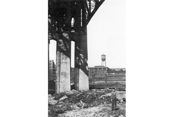 Эта фотография автомобильного моста «Лорейн-Карнеги», под пятым пролётом которого были найдены останки, получившие условное название «тело №8». Подросток на фотоснимке – это тот самый Рассел Лойер, кто нашёл мешок с останками. Подросток стоит на том самом месте, где лежал мешок. Снимок даёт неплохое представление о том, в какой местности «Безумный Мясник» спрятал останки своей очередной жертвы. Промышленный район, лишённый жилой застройки, заваленный разнообразным хламом и мусором, явился, по мнению убийцы, прекрасным «кладбищем». Можно считать, что лишь по чистой случайности труп вообще оказался найден.