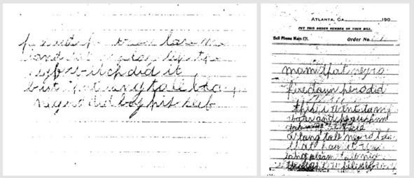 Одна записка была исполнена на белой бумаге, другая – на жёлтой [это был стандартный бланк платёжной квитанции, которую могли заполнить где угодно – в магазине, транспортной компании и т.п.]. Тексты были написаны не литературным английским языком, а специфическим местным диалектом, поэтому прямой перевод с современным словарём не будет корректным. Содержание записки на белой бумаге можно перевести на русский язык примерно так: «Он сказал, что будет любить меня, улёгся поиграть, как это проделала ночная ведьма, но тот длинный высокий черный негр сделал это сам»6. Записка на жёлтой квитанции гласила: «Мамочка, этот кочегар здесь внизу изнасиловал меня, когда я пошла за водой, он столкнул меня в шахту лифта, а длинный высокий негр, чёрный, изнасиловал меня. Я жива, пока они насилуют меня»7.